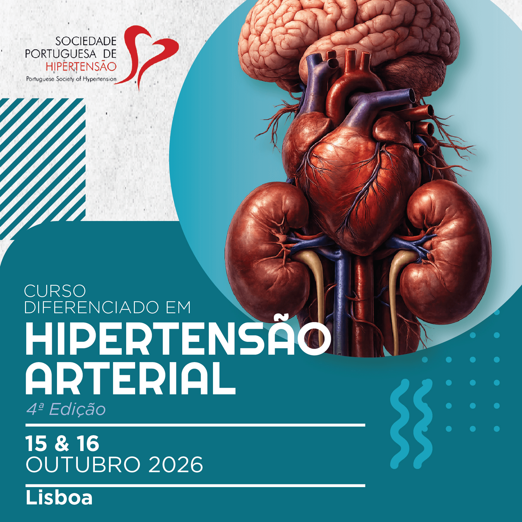 Nos dias 15 e 16 de outubro de 2026, terá lugar a 4.ª Edição do Curso Diferenciado em Hipertensão Arterial, que se realizará em Lisboa.