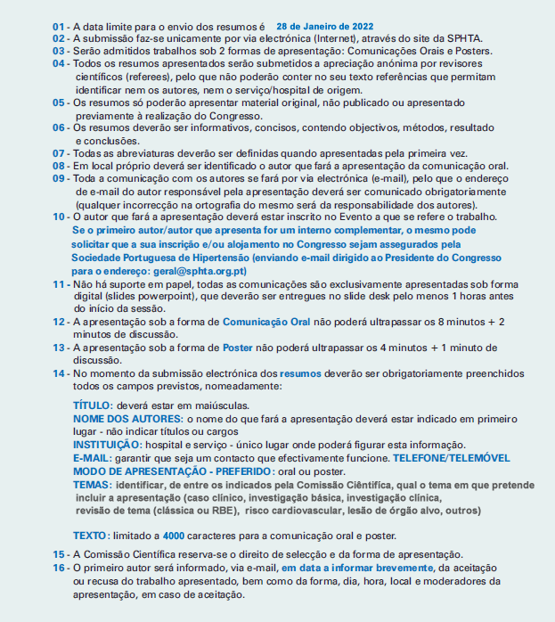 O 16º Congresso será um lugar de presenças, será um lugar de paixões, será lembrado – queremos acreditar - como um dos congressos mais participados para além da pandemia. Estará vivo, porque a vida é convívio. A vida é, também paixão e nós, a Sociedade Portuguesa de Hipertensão – no programa que se segue– tudo fizemos para encontrar fontes de interesse para todos e, simultaneamente, também, um lugar de emoções no coração de cada um.